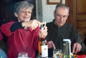 Après, c’est le banquet… avec des crudités, des boulettes de viande, des fromages nombreux, le tout arrosé de force vins et…du bon pain boulangé par André, sans oublier la meringue glacée d’Anne.