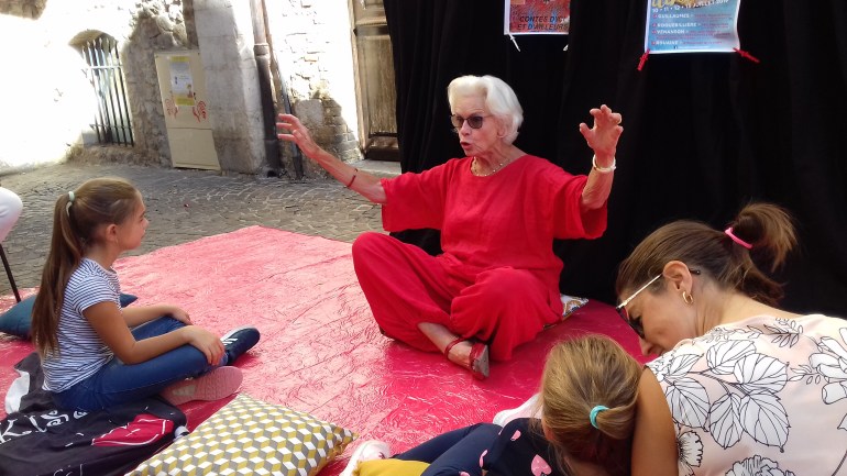 Odile, Geneviève, Nathalie, Catherine, Solange et Corinne pour la journée « la rue est à nous » à Vence : Contes à la demande !