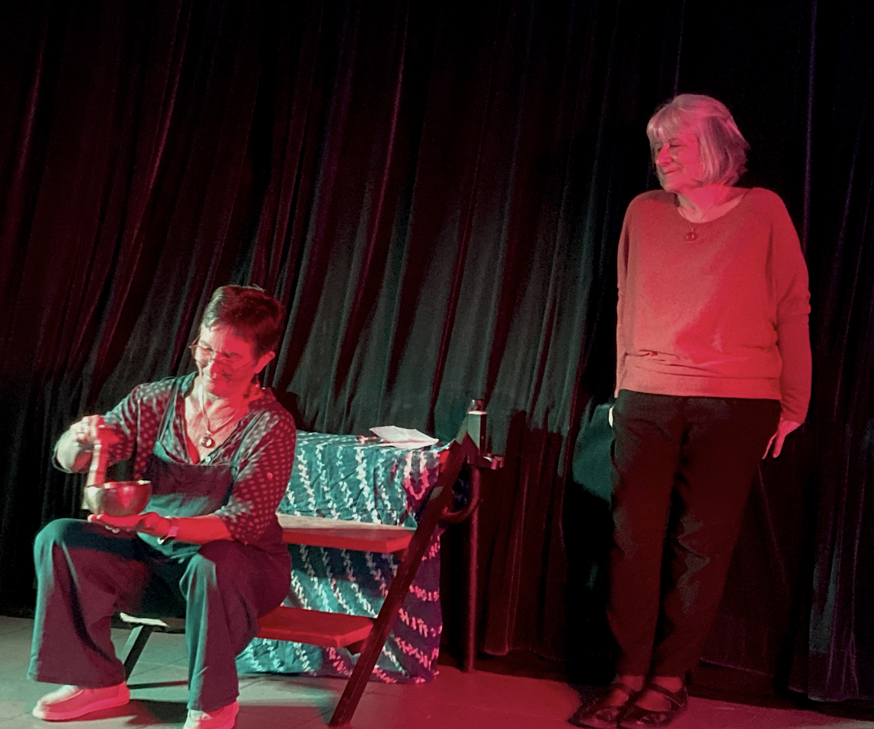 Et le soir, après Donquichotte what else ! de la Cie Dessous de Scène (quelle franche rigolade !), Marielle a rejoint Frédérique et Claudine pour une heure de contes grivois, plaisir partagé !