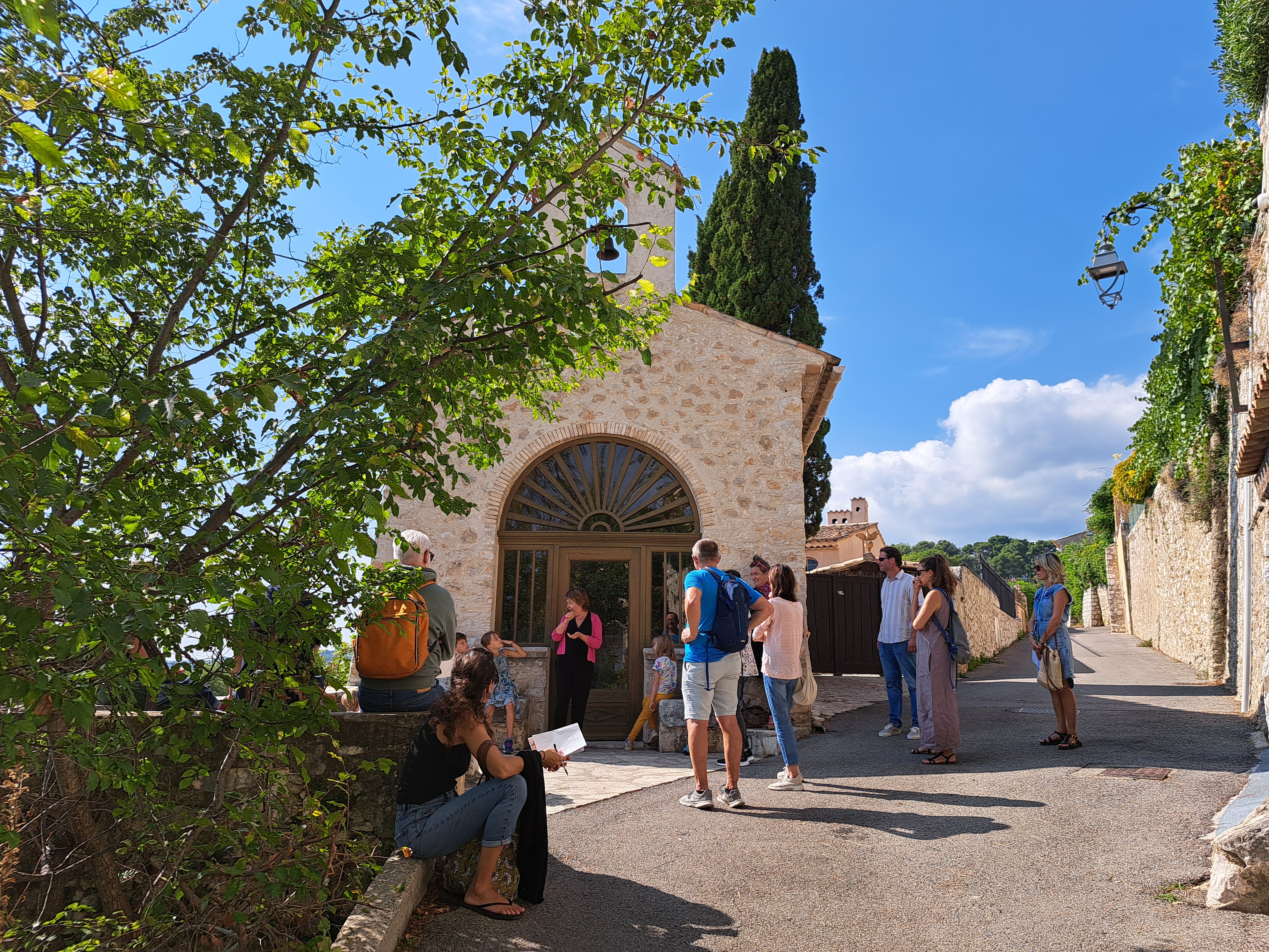 Sur le chemin des chapelles à St Paul de Vence, Geneviève, Corinne et Nathalie ont donné la parole aux contes, Olivier à l’histoire et au parimoine culturel.
